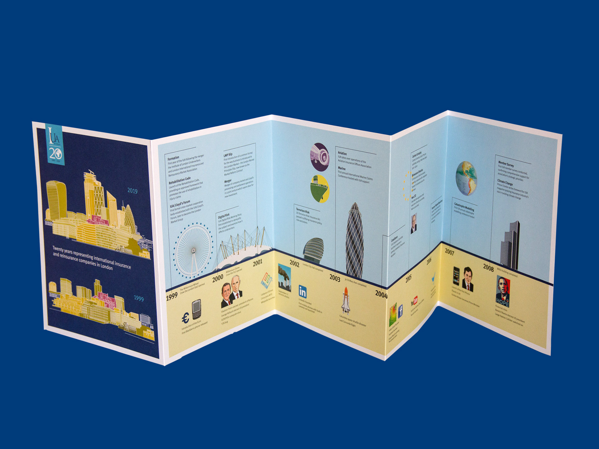 Icons created for a timeline illustrating 20 years of the International Underwriting Association