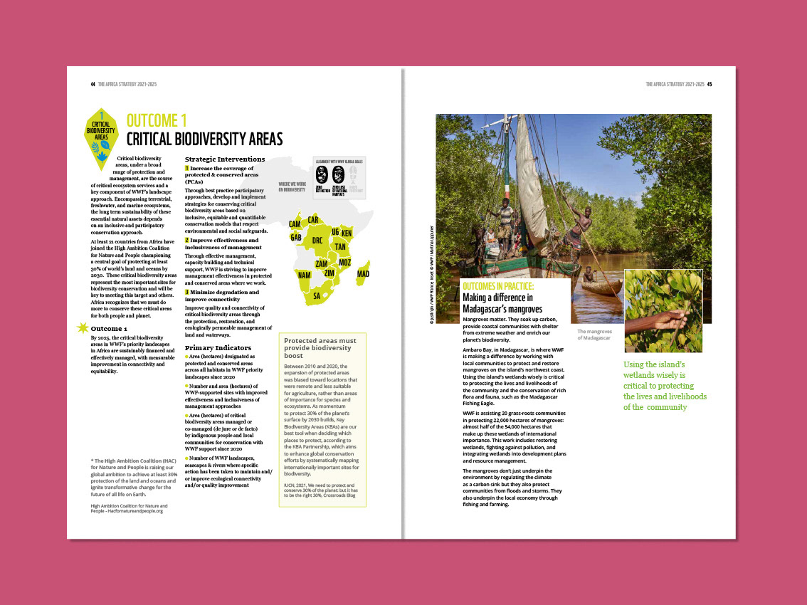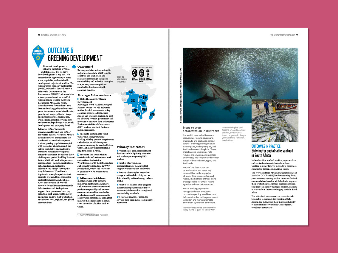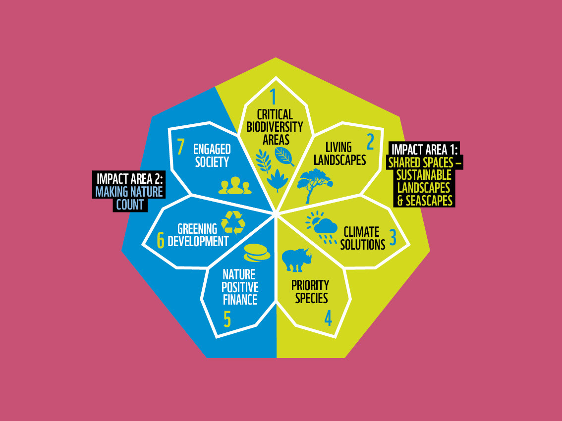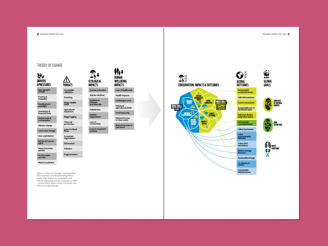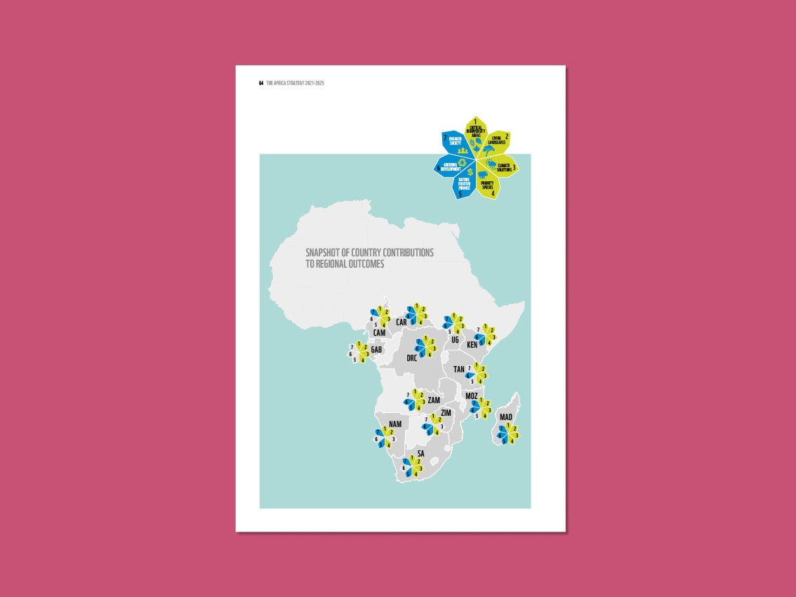 The World Wide Fund for Nature asked me to devise a key infographic which would summarise their sevenfold strategy. Called 'the heptagon' by some and 'the flower' by others, this image helps to show how all WWF activities in Africa fit into an overall plan.